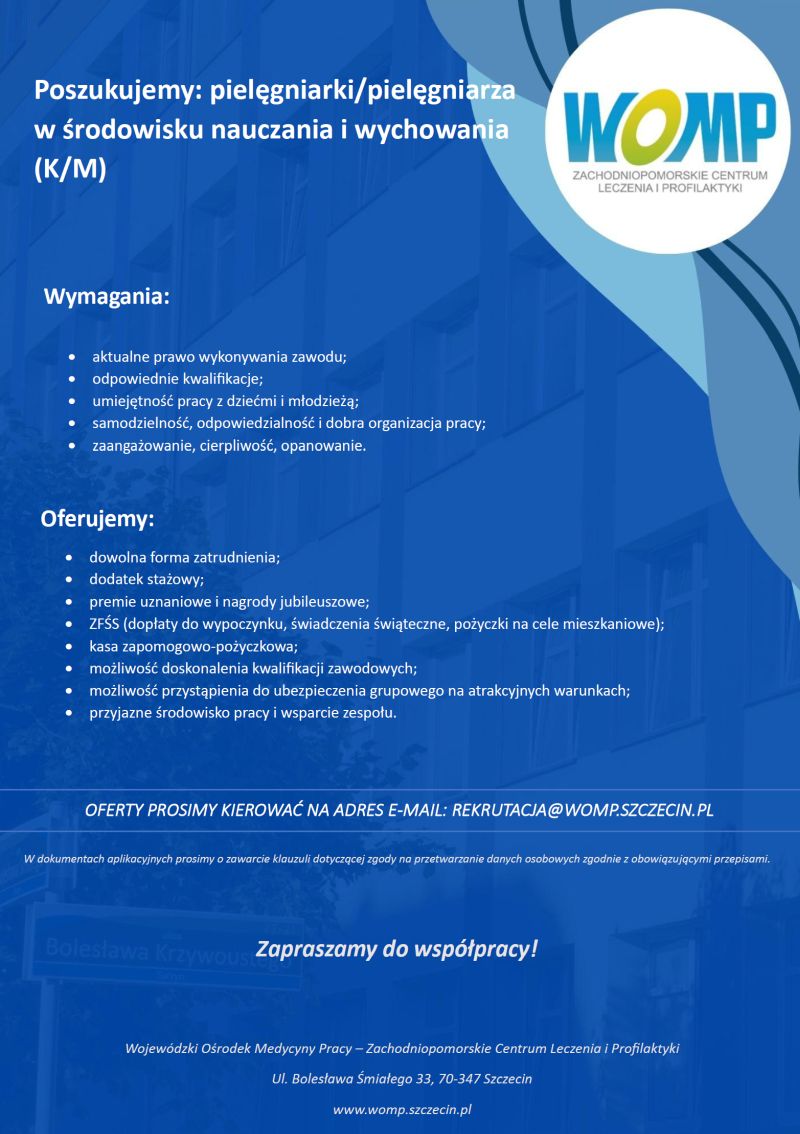 ul. Wojska Polskiego 27, 73-110 Stargard (Kancelaria pok. 007) lub drogą elektroniczną na adres: biuro@zozstargard.pl, z dopiskiem: „Oferta na stanowisko PIELĘGNIARKI /PIELĘGNIARZA
